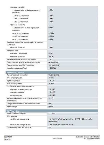 5SD7464-0 PARAFODUR C SINIFI 3+1 TN-S TT 4P
